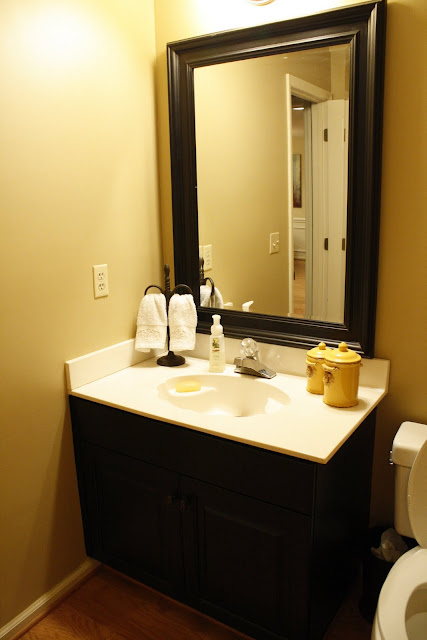 We closed on our house in August 2007. Since then, the room in the house that has seen the least decorating action is our half-bath. It's a real shame too because it's one of the rooms that gets used the most. For starters it's the only bathroom on the first floor, so we use it all the time, but more importantly our guests use it when they come to visit!